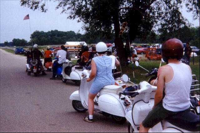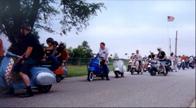 Lining up for the ride to the lake. |